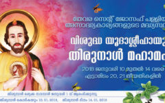 Feast of St Joseph 2018 starts with 9 day Novena prayers starting from 6th March, with the feast day’s commencing from 15th March to 19th March. Thirunal Oottu Sadya on […]